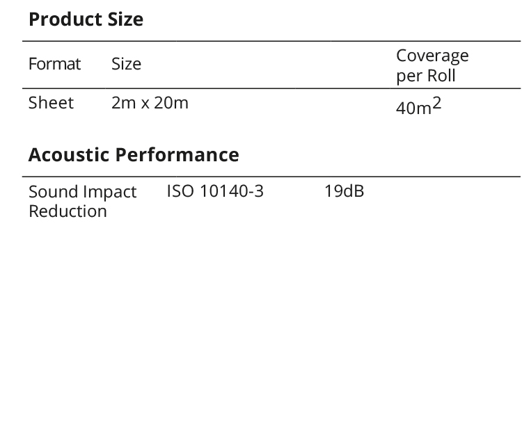Designed to be installed beneath Polyflor, Polysafe & Expona sheet product lines (with a minimum gauge of 2mm), to achieve an impact sound reduction level of 18dB. Allows a broader choice of colours, styles and performance characteristics with an unrivalled total of ‘top-layer’ product options