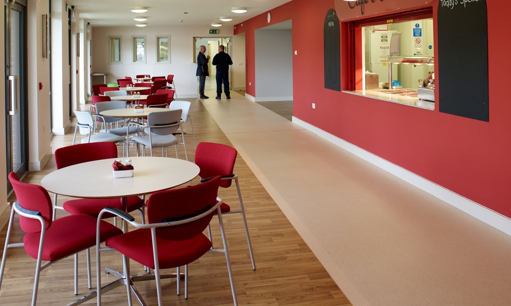 - Acoustic sheet flooring available in 8 colours