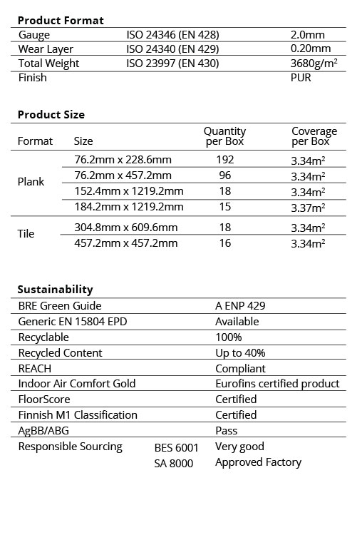 Colonia PUR is a collection of high design luxury vinyl tiles, ideal for all home interiors featuring a mix of natural stone, slate & marble effect tiles as well as various striking wood plank designs. Colonia PUR is a BRE Global A Rated Product and features a polyurethane reinforcement to reduce maintenance costs. The collection is fully supported by co-ordinating grouting, marquetry & feature strips to provide creative freedom.
