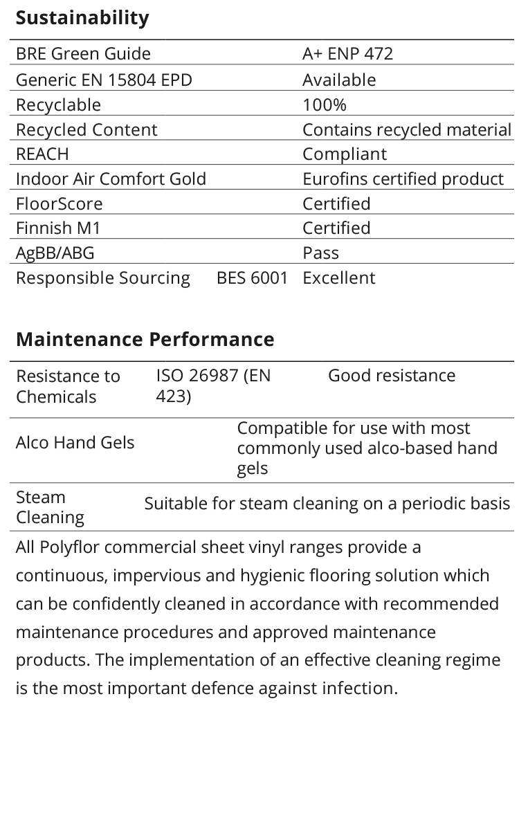 Polyflor's product specific EPDs are verified by IBU (Institut Bauen and Umwelt e.V.) - an independent environmental organization which works closely with construction and environmental authorities in Germany. Product specific EPDs available on www.ibu-epd.com/en/-published-epds