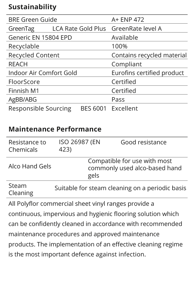 Polyflor's product specific EPDs are verified by IBU (Institut Bauen and Umwelt e.V.) - an independent environmental organization which works closely with construction and environmental authorities in Germany. Product specific EPDs available on www.ibu-epd.com/en/-published-epds