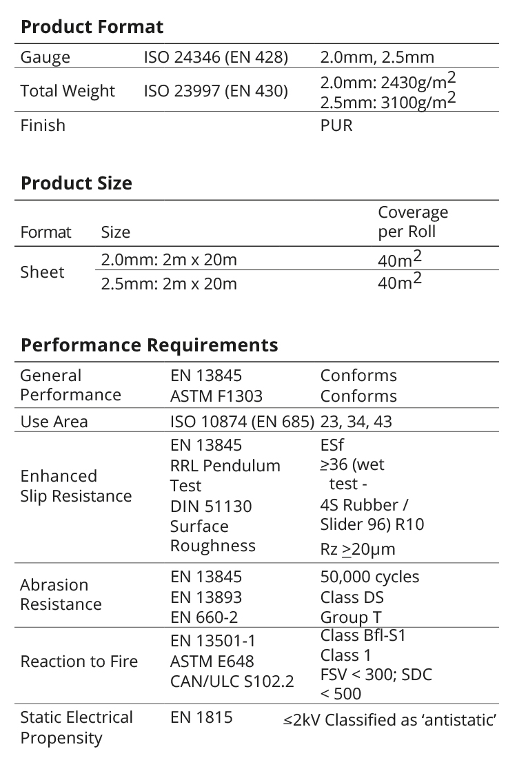 Polysafe Standard PUR is a hugely popular safety vinyl range combining the assurance of sustainable slip resistance with high durability for years of performance. This collection incorporates safety aggregates in the vinyl to create a safe yet attractive interior in commercial or residential settings. Typical installations are within education, healthcare, social housing, leisure & commercial office sectors.