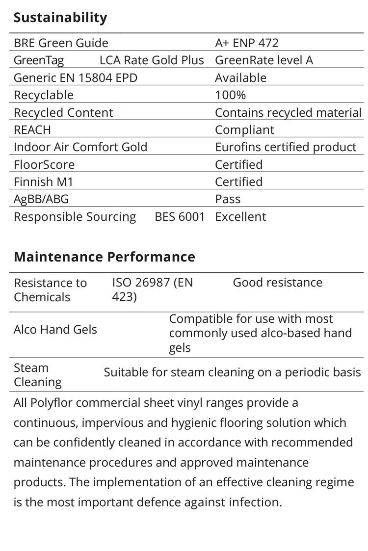 Polyflor's product specific EPDs are verified by IBU (Institut Bauen and Umwelt e.V.) - an independent environmental organization which works closely with construction and environmental authorities in Germany. Product specific EPDs available on www.ibu-epd.com/en/-published-epds