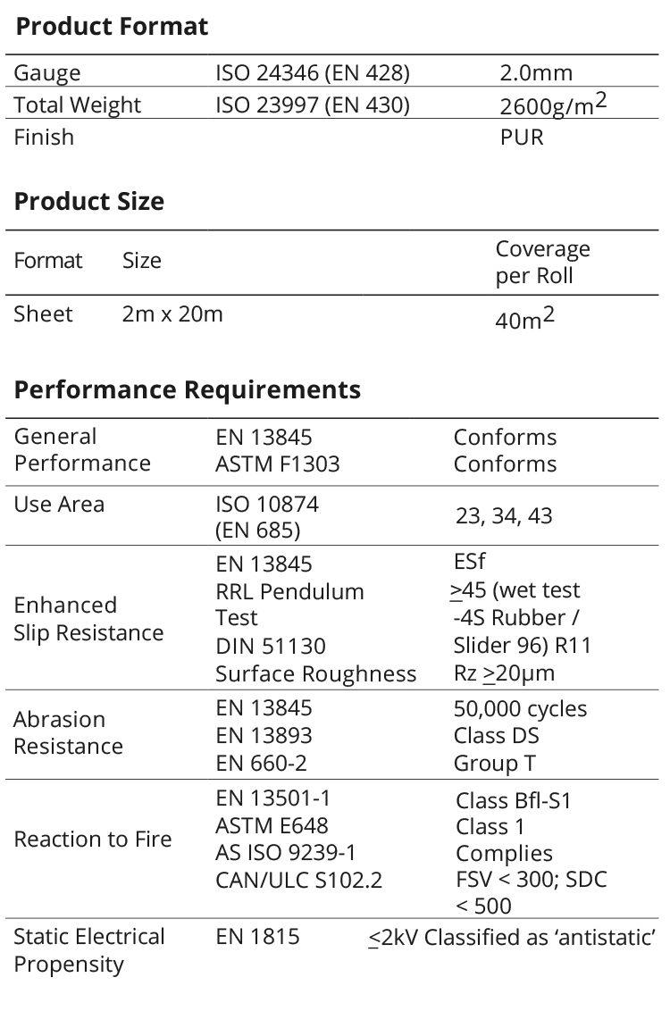 - Safety sheet flooring available in 18 colours